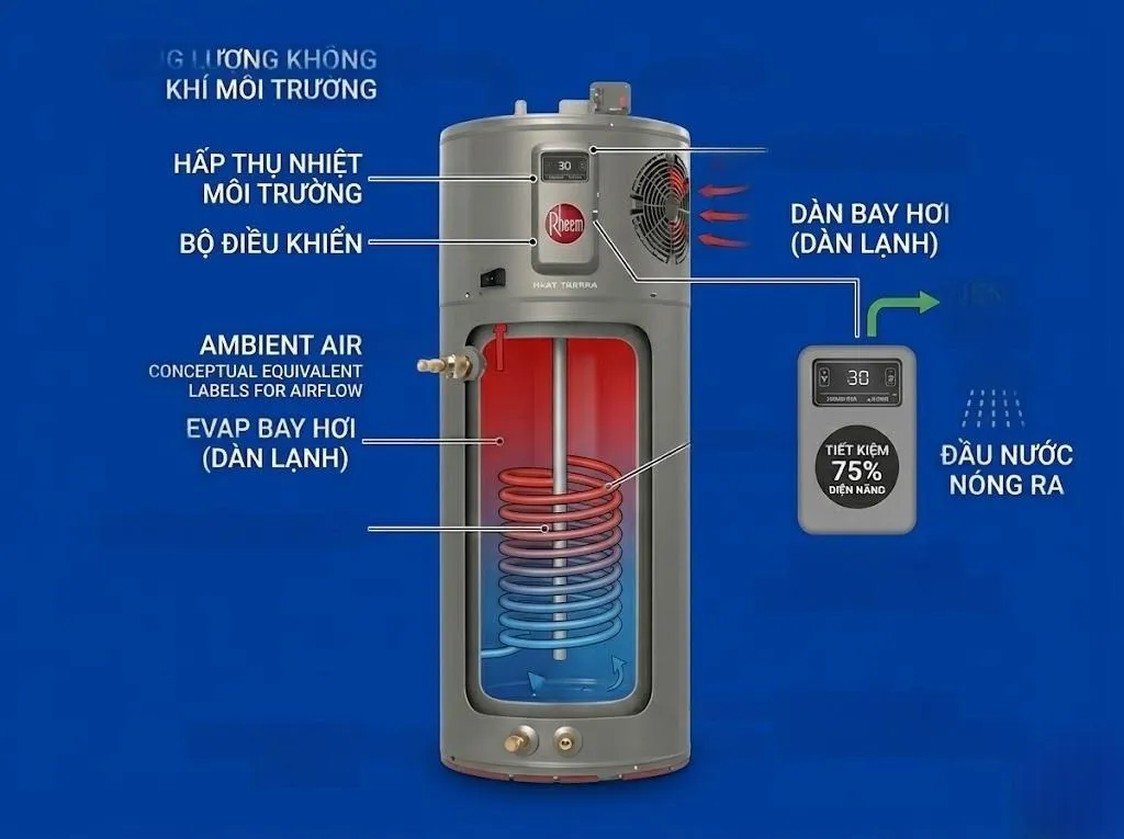Máy Bơm Nhiệt Rheem ProTerra 180L RHP180-2805: Thông số, Đặc điểm, Hiệu năng, Giá bán & Gợi ý đơn vị uy tín