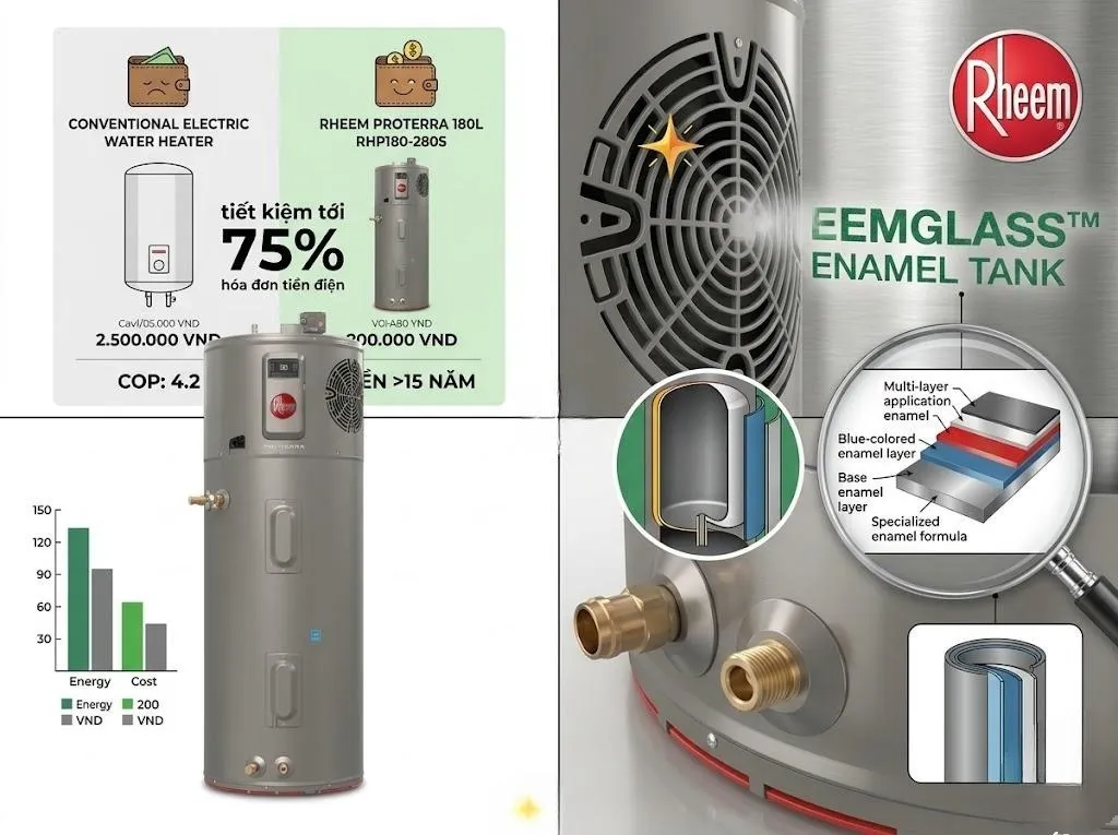 3. Đánh giá hiệu năng thực tế: Rheem ProTerra 180L tiết kiệm bao nhiêu tiền điện?